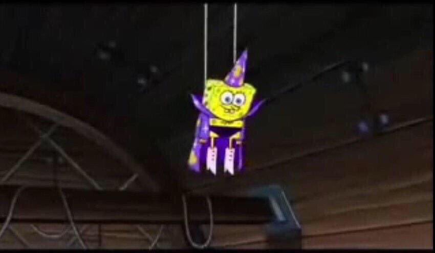 The show opens with a rendition of “God Bless America” and “This Land Is Your Land.” She stands atop the stadium, with drones lighting up the sky behind her in red, white, and blue. The use of drones was interesting, though I think they could’ve done more with them. She then leaped down below, taking the plunge into the stadium. Gaga’s use of the harness could have been more graceful, the awkward handling of it causing a bit of disconnect in the flow of the performance. This caused many people to circulate this photo of Spongebob Squarepants on social media: