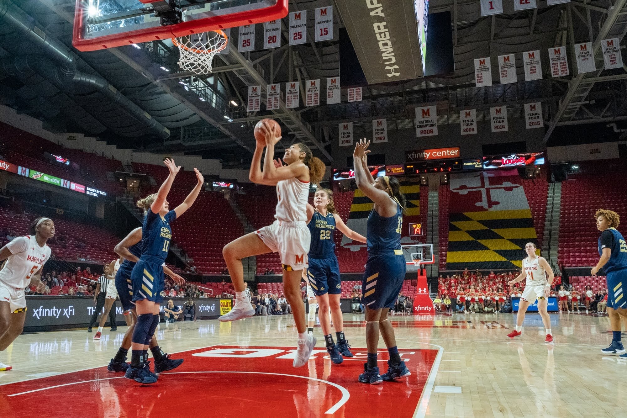 Her two-way play was key to No. 9 Maryland’s (4-1) 88-54 victory against George Washington (2-3) and the Terps’ defensive resurgence