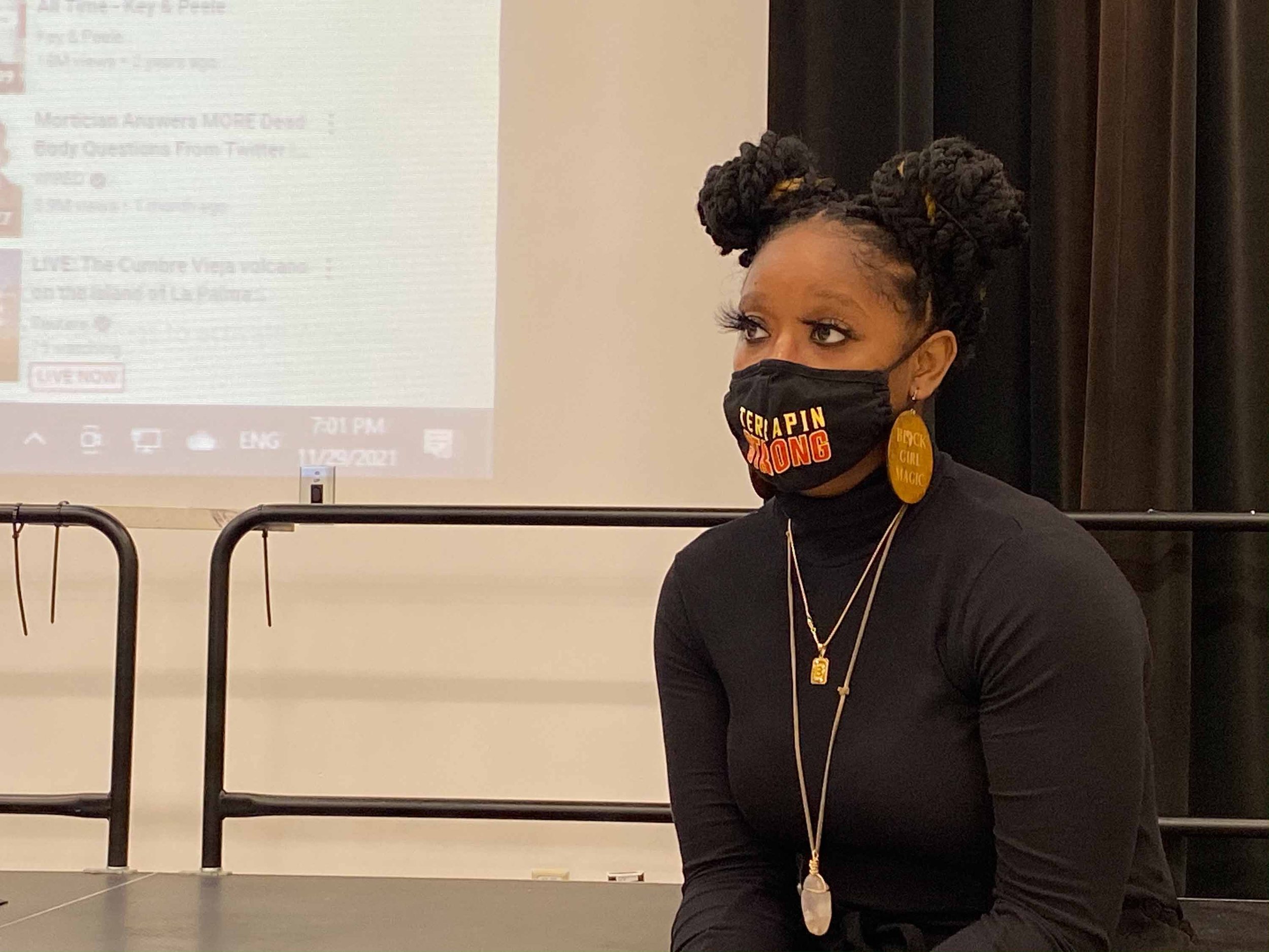 Sammoya Wright, a junior majoring in public health science on a pre-med track, shared her personal experience of having to look elsewhere for a Black female therapist because the counseling center had few of them.