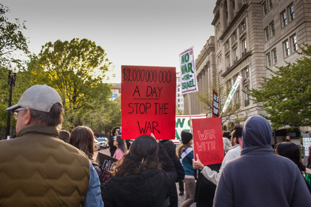 Protestors gathered outside the White House on April 8 to show their disapproval of ongoing war within the Middle East, demanding resolutions like an arms embargo and youth resistance to solve the region’s conflicts.