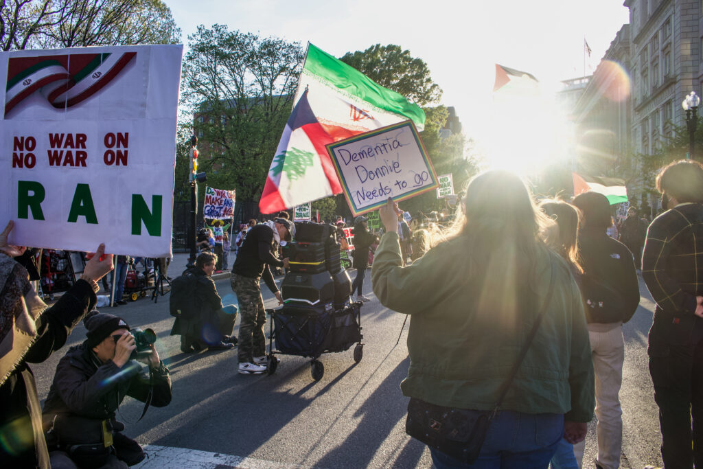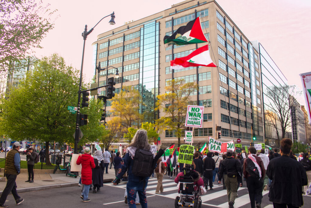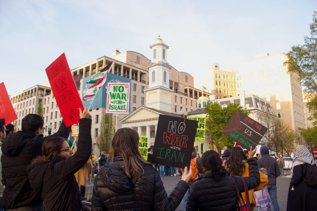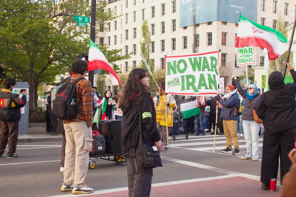 Protestors marched from the White House to Dupont Circle, carrying protest signs, Iranian flags and Palestinian flags. PSLDC and the National Iranian Council postponed what was originally intended to be a panel for a rally due to the U.S.-Israel ceasefire agreement with Iran.