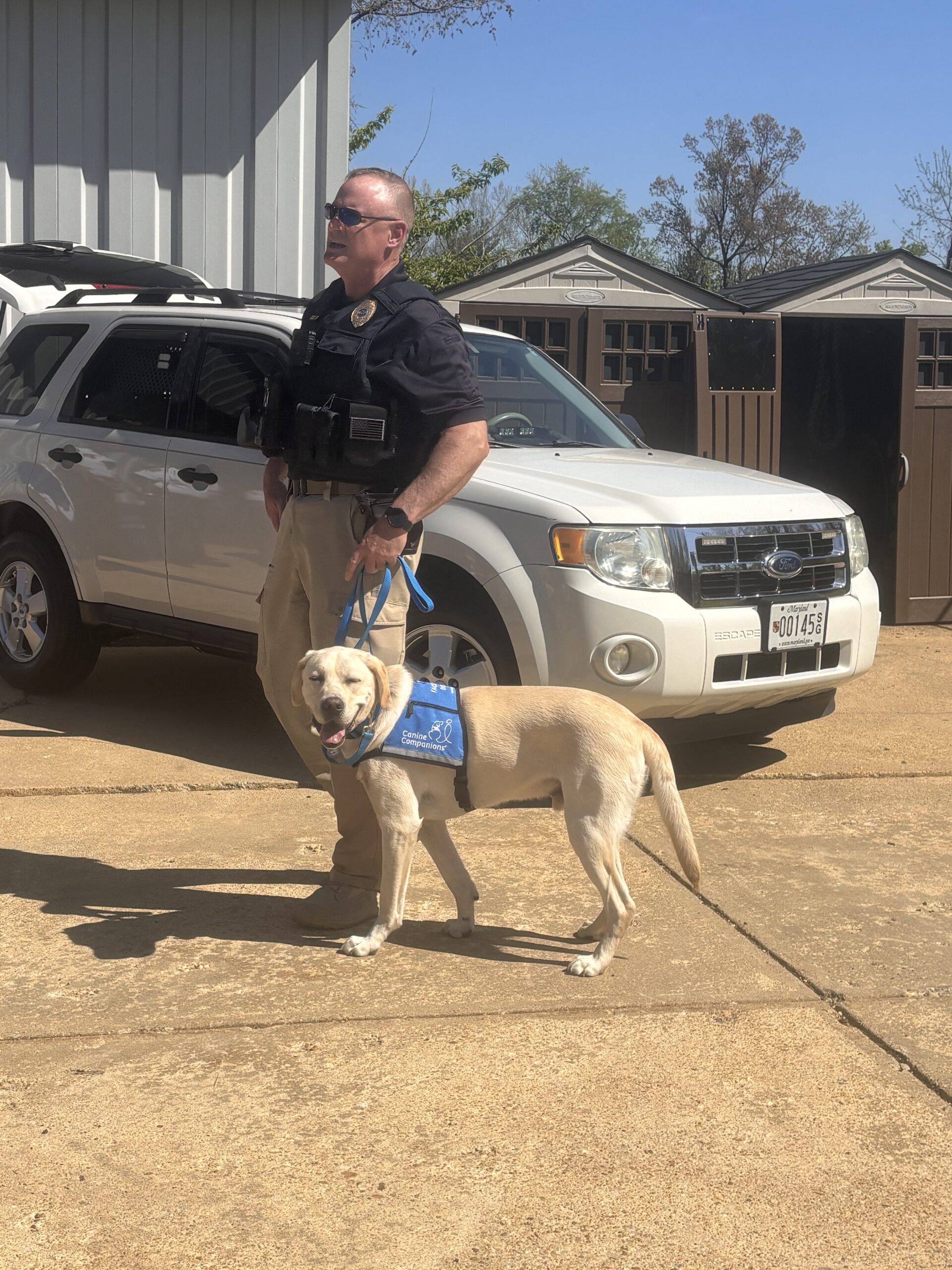 The 2-year-old golden retriever-Labrador mix was trained in partnership with Canine Companions, a non-profit organization that trains puppies to become facility dogs who work with adults, children and people with disabilities. He is handled by Corporal Bart Brady and will serve as a campus-wide resource focused on student engagement and mental health support.