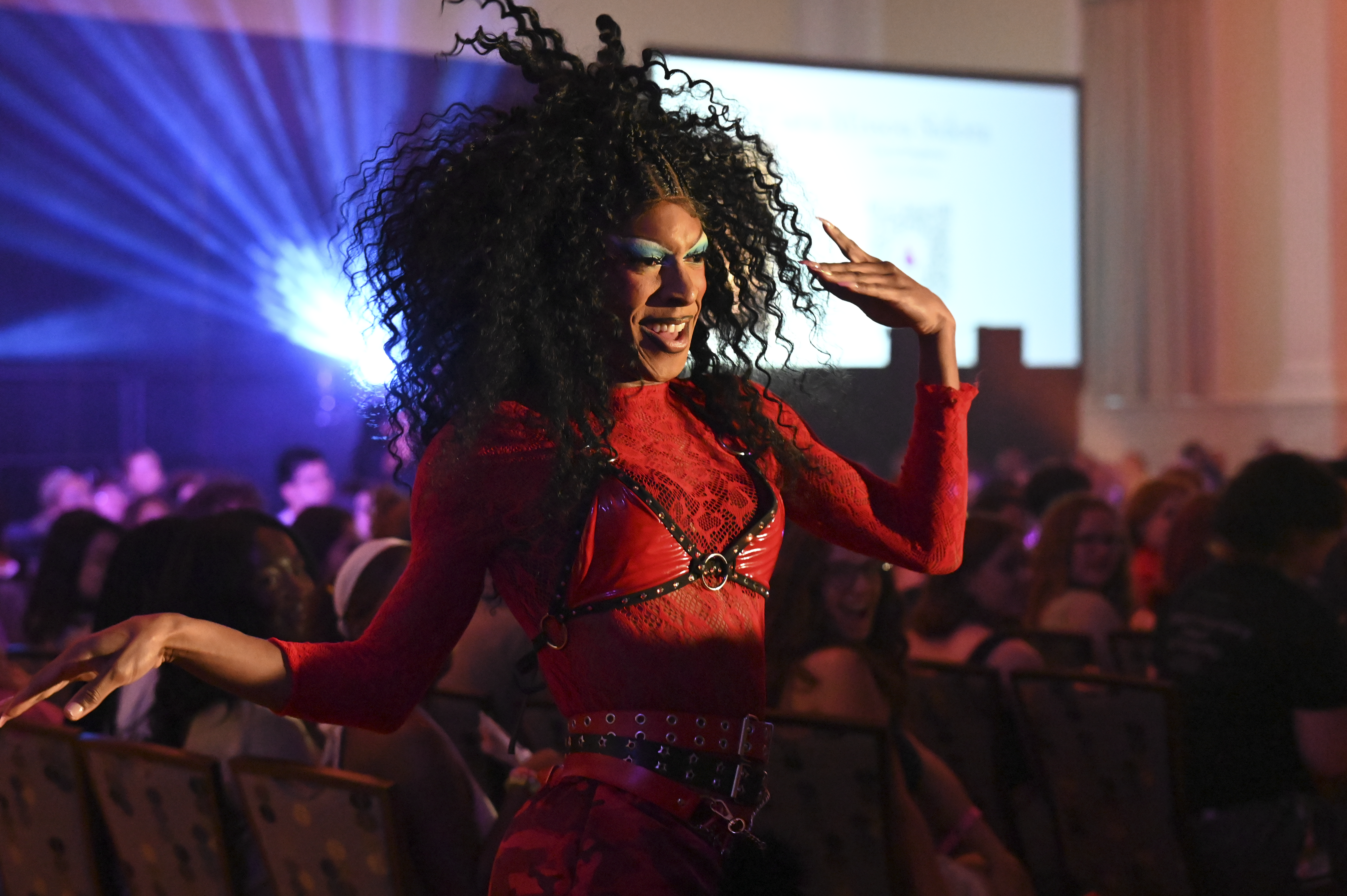 Headliner Luxx Noir makes a grand entrance at the Student Entertainment Events Spring Drag Show on April 17, 2026, celebrating self-expression and LGBTQ+ culture. (Jessica Wu/The Black Explosion)