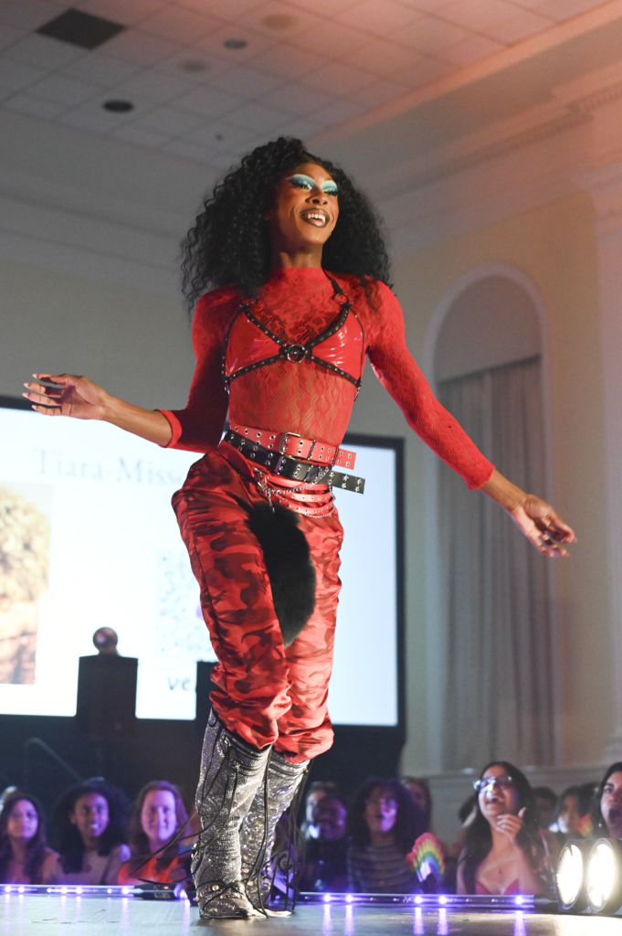 Local drag queen Tiara Missou, lights up the stage at Stamp Student Union on April 17th, 2026, bringing the community together to celebrate self-expression and LGBTQ+ culture. (Jessica Wu/The Black Explosion)