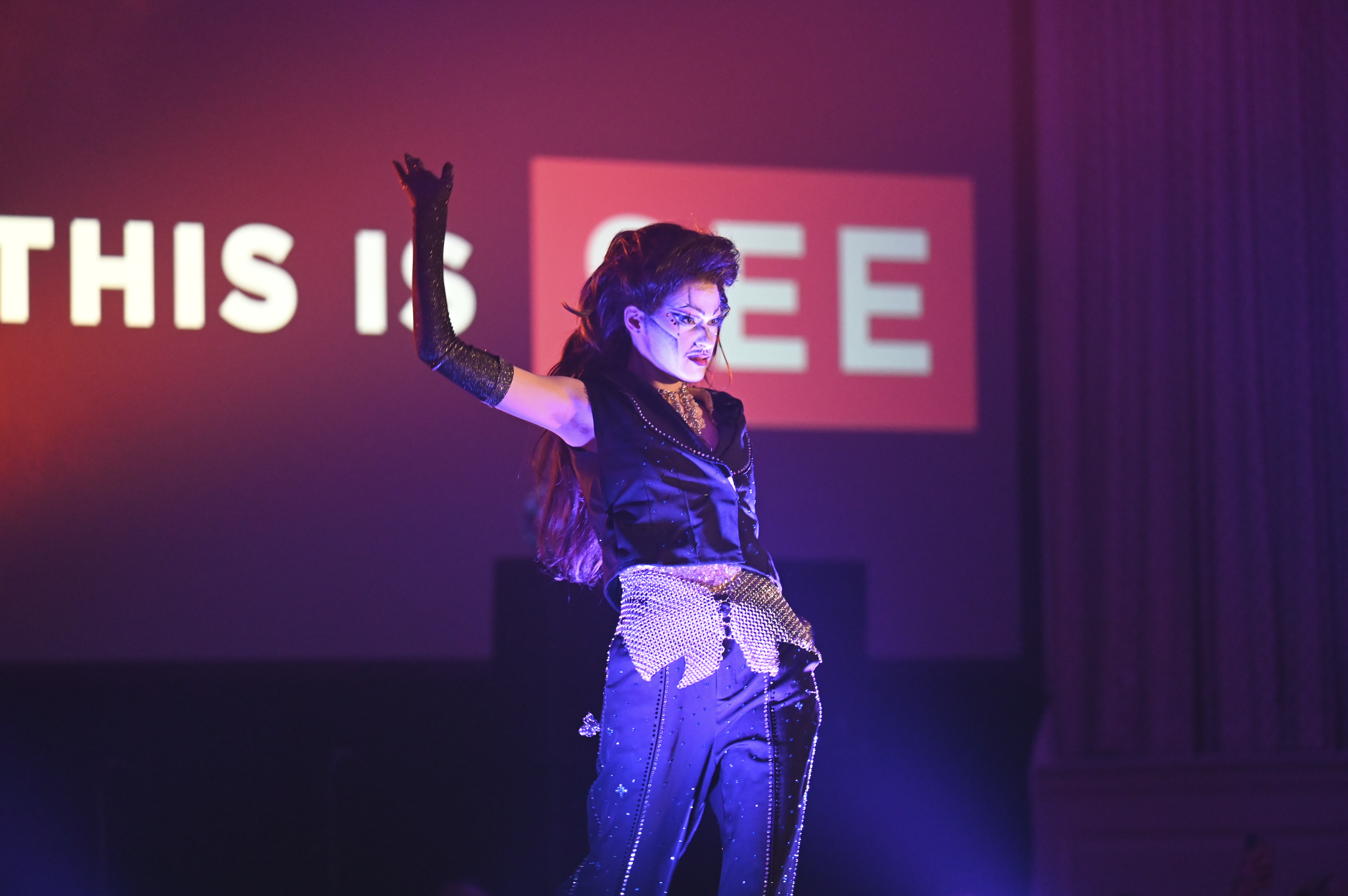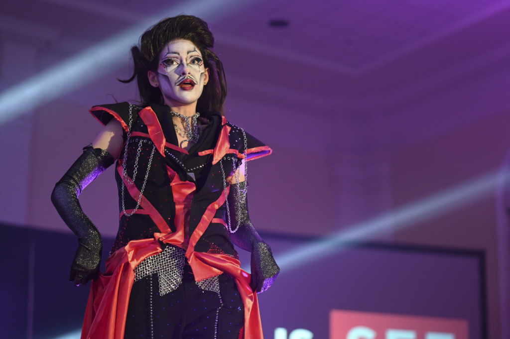 Student performer Sinistaire at the SEE Spring Drag Show at Stamp Student Union on April 17, 2026. (Jessica Wu/The Black Explosion)